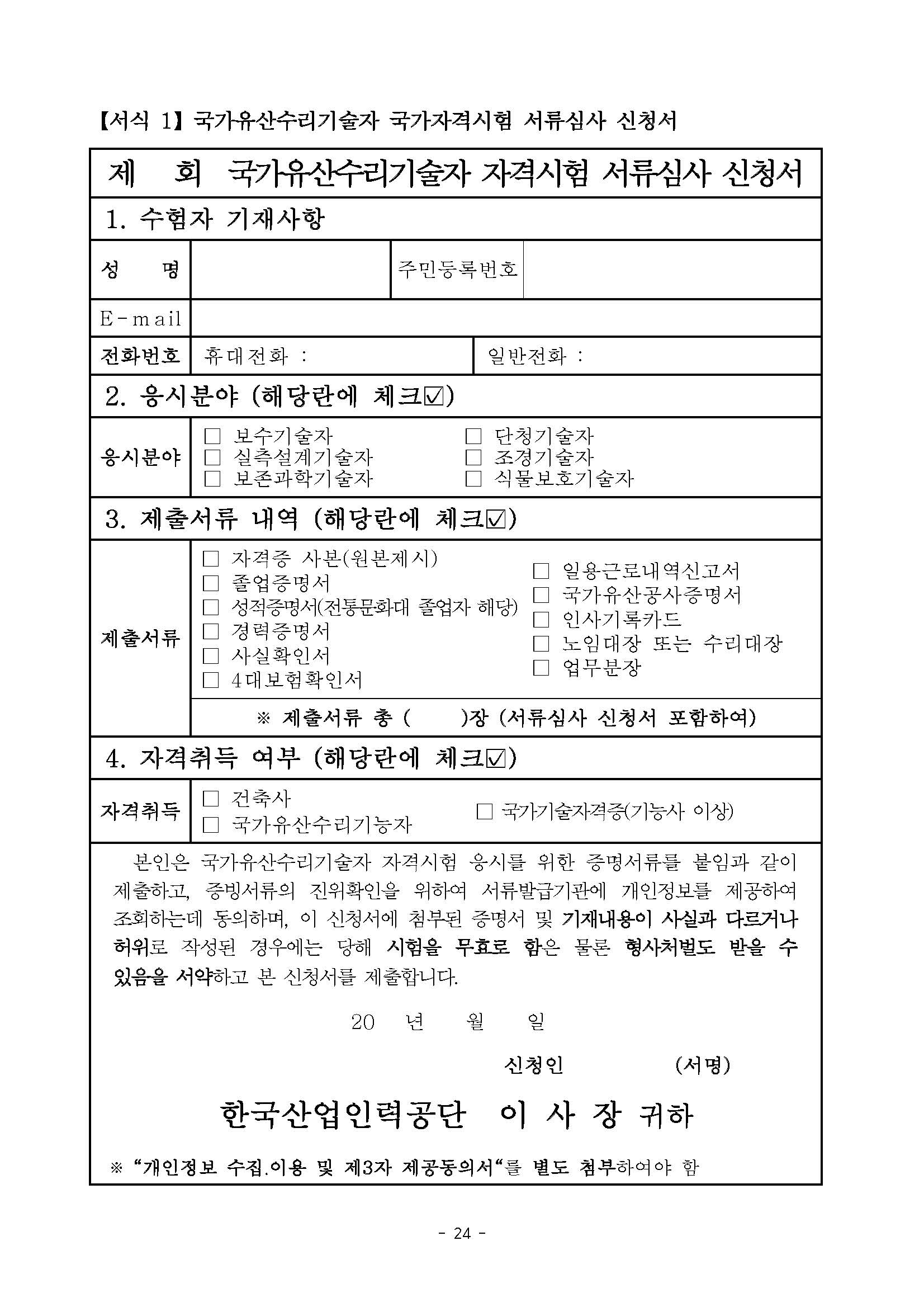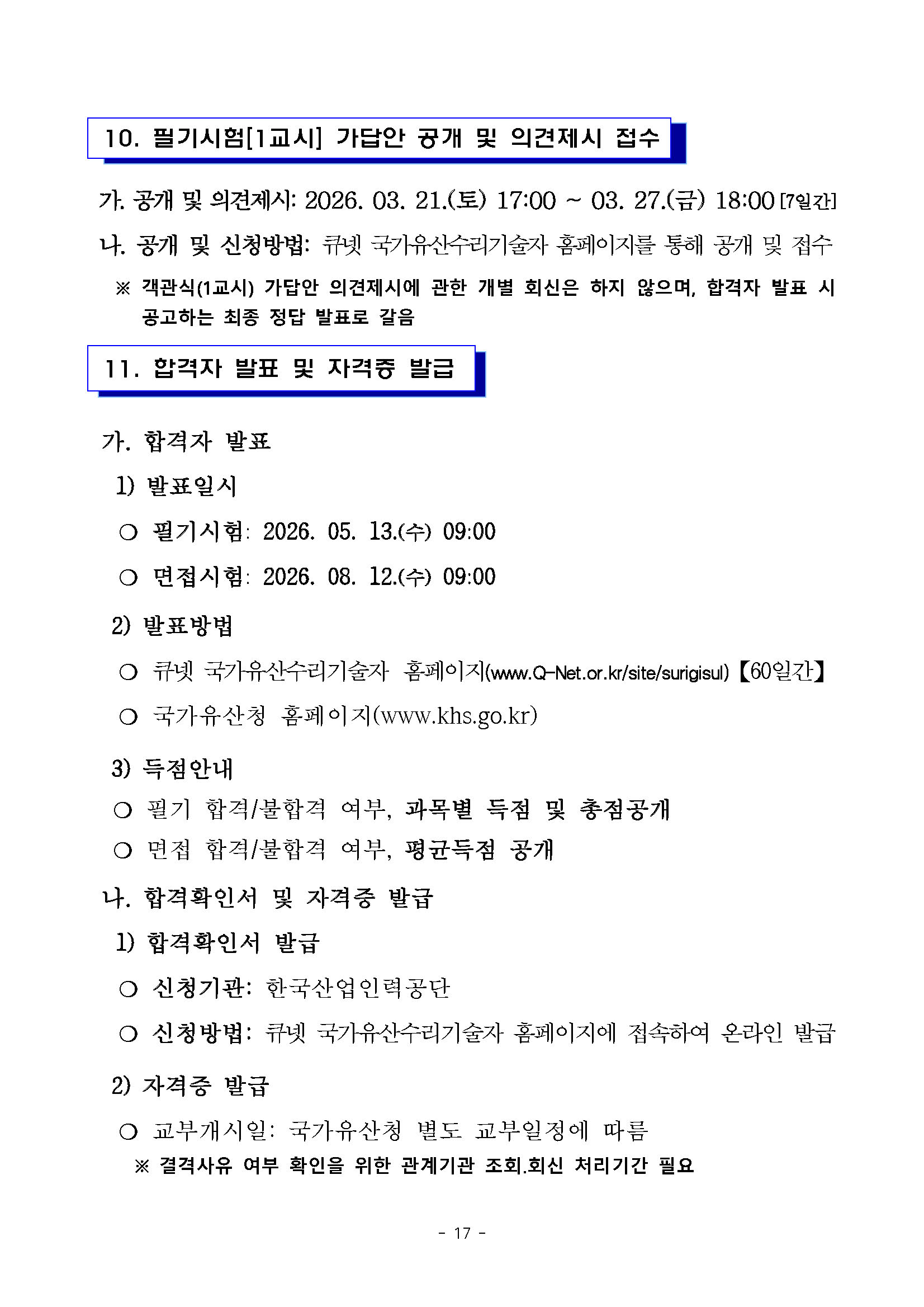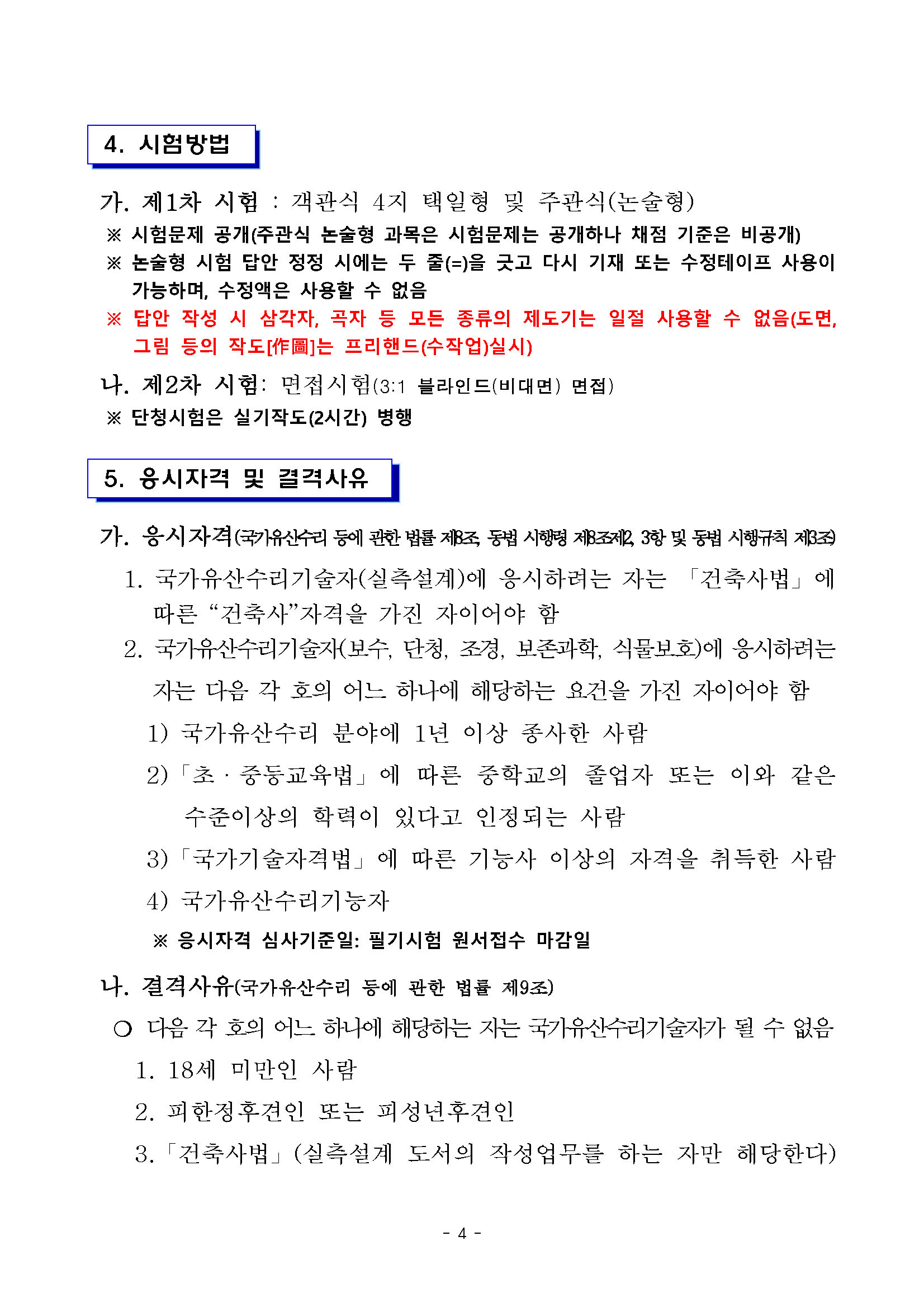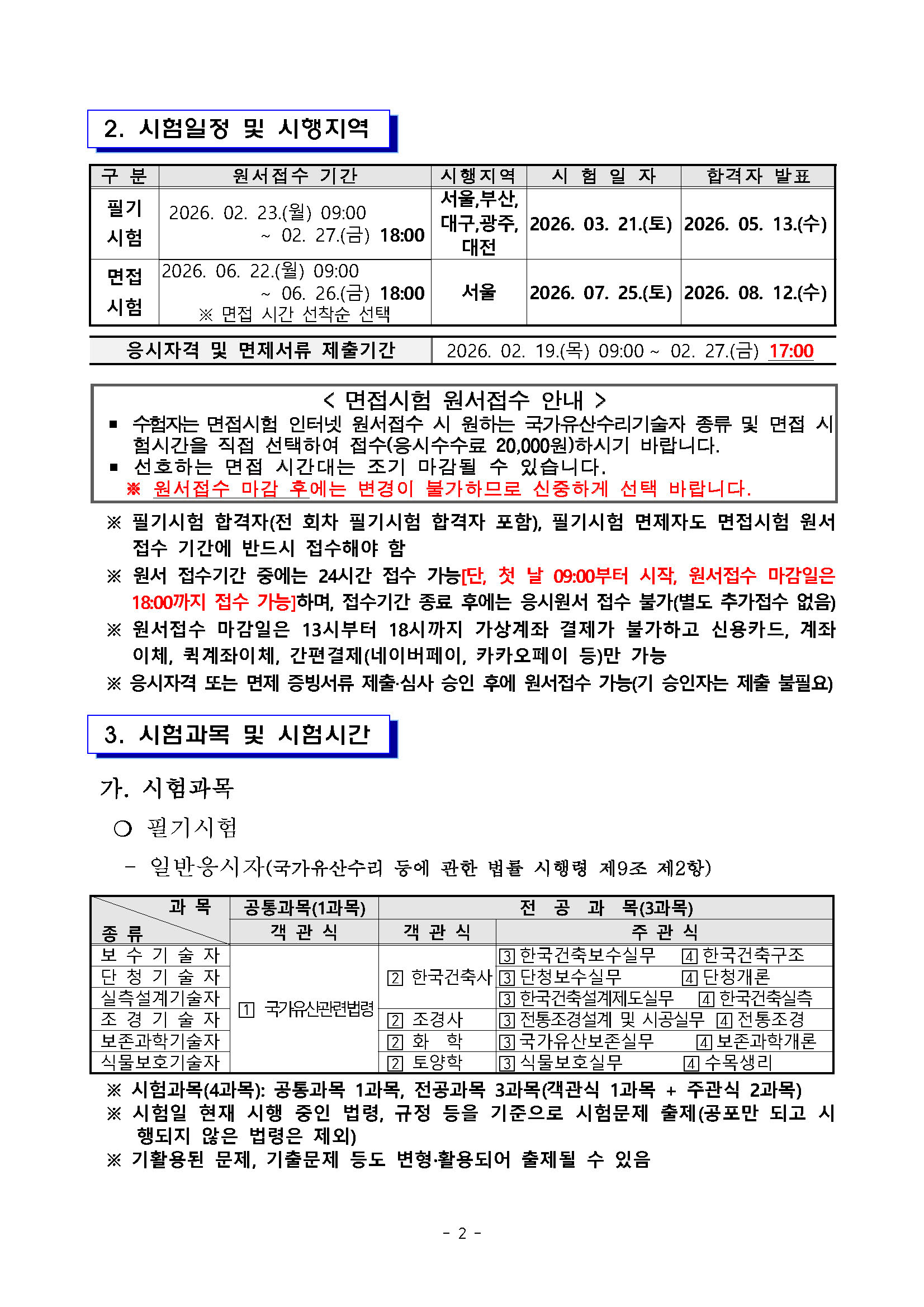2026년도 제44회 국가유산수리기술자 국가자격시험 시행계획 공고